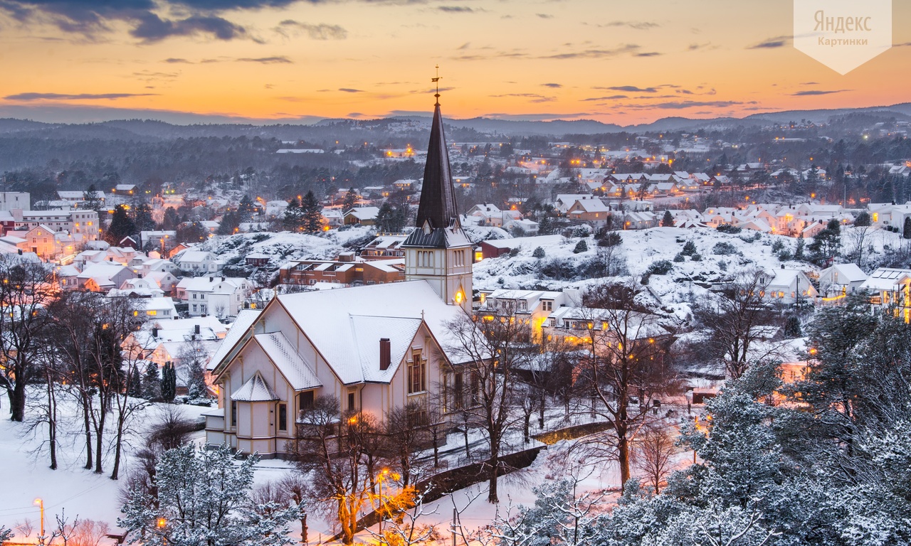 Закат на севере в Гримстаде. Норвегия